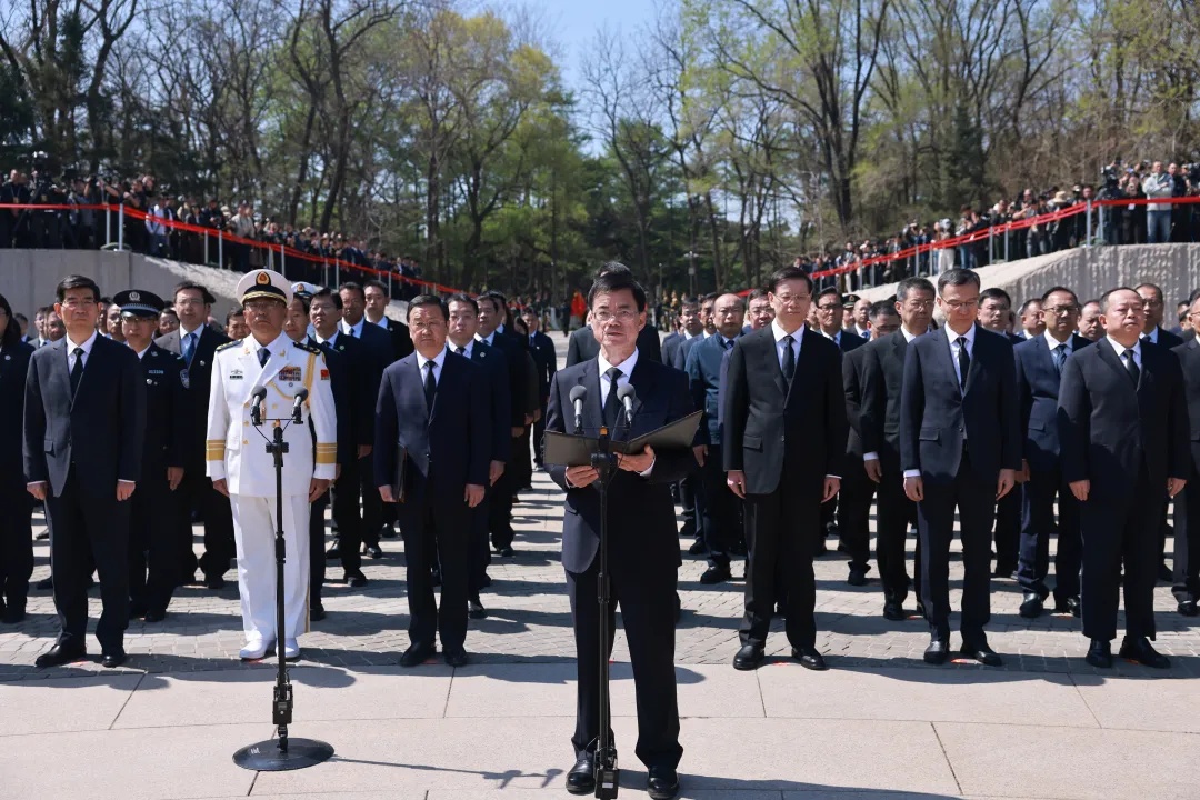 4月23日上午,第十三批在韩中国人民志愿军烈士遗骸安葬仪式在沈阳抗美援朝烈士陵园举行。betvictor伟德(中国)唯一官方网站 事务部党组书记、部长裴金佳出席仪式并致祭文。曹舒昊 摄